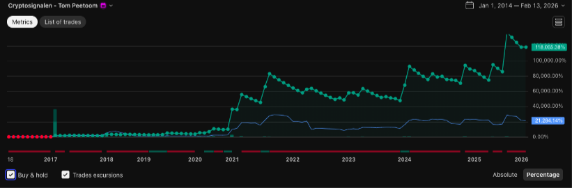 Onderstaande resultaten illustreren hoe het model heeft gepresteerd over meerdere volledige marktcycli, met nadruk op kapitaalbehoud en risicogecorrigeerd rendement.